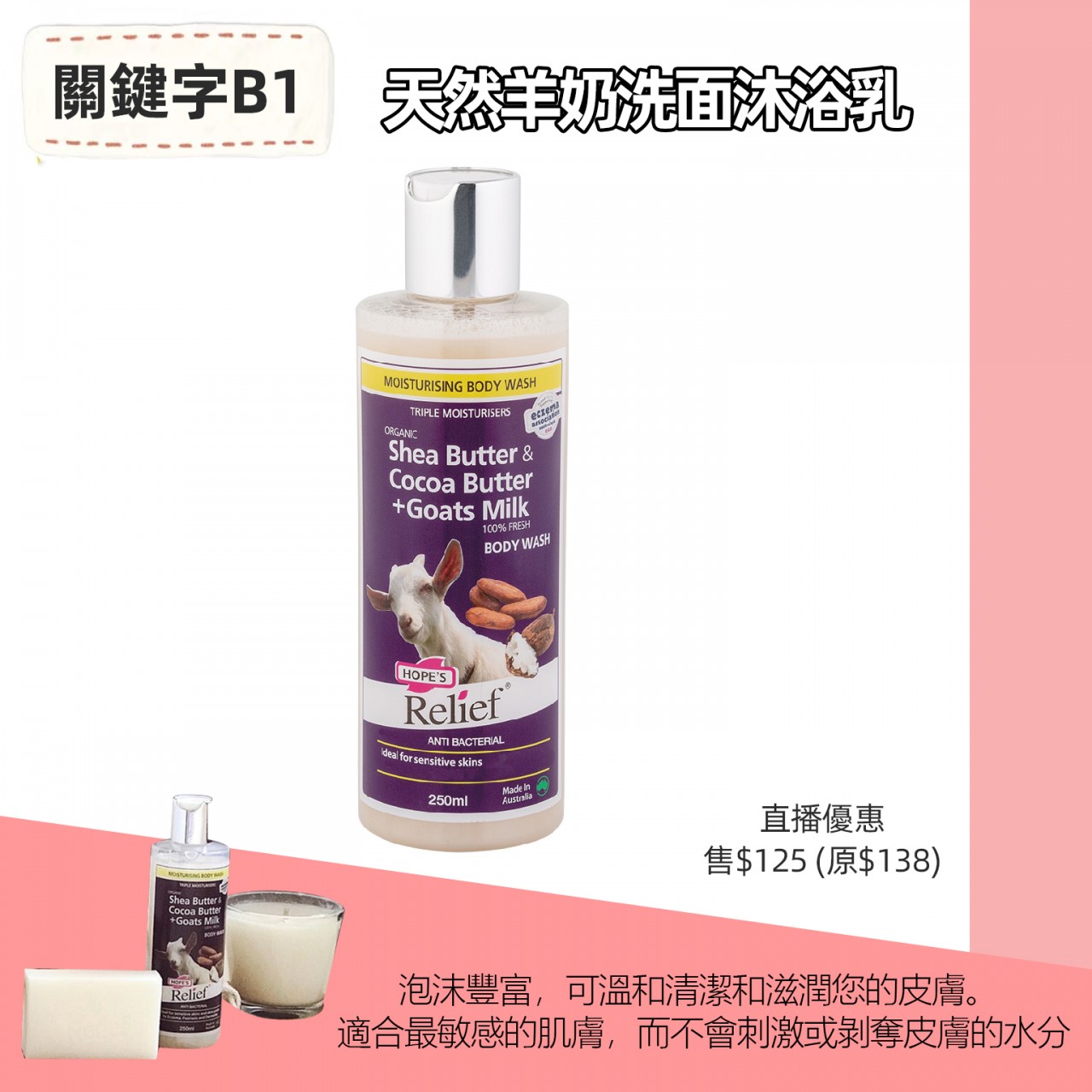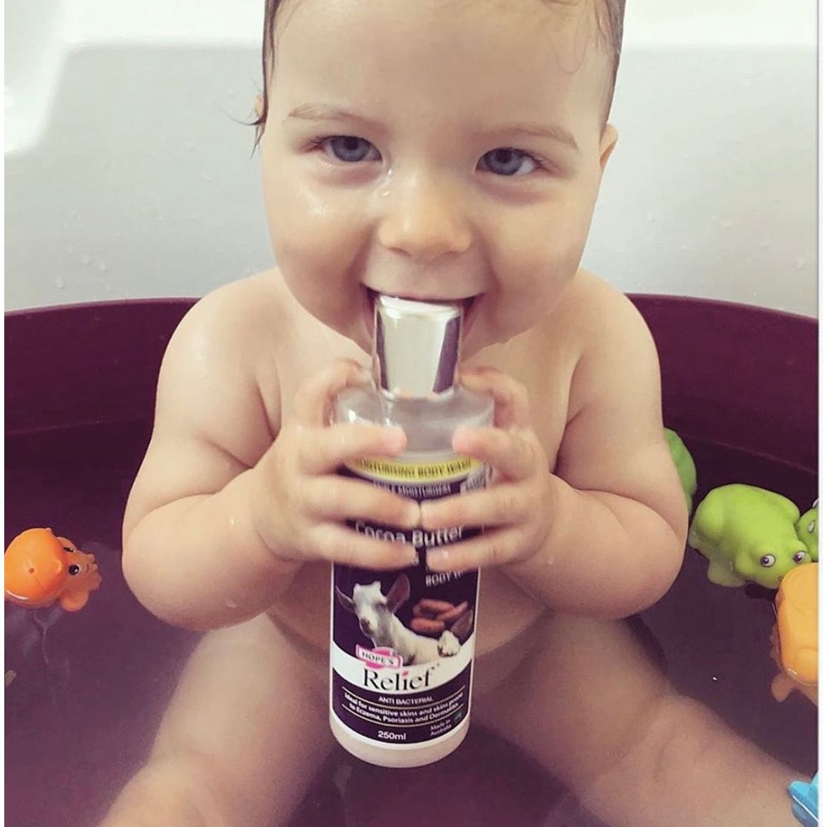 為了讓肌膚感覺超級水潤、柔軟、光滑,請將 Hope’s Relief 羊奶沐浴露擠到手掌、去角質手套或身體刷上; 與水混合,產生豐富、柔滑、甘美的泡沫,按摩全身。 沐浴或淋浴後拍乾身體,然後塗抹我們奶油般的Moisturising Lotion,實現終極自然保濕。